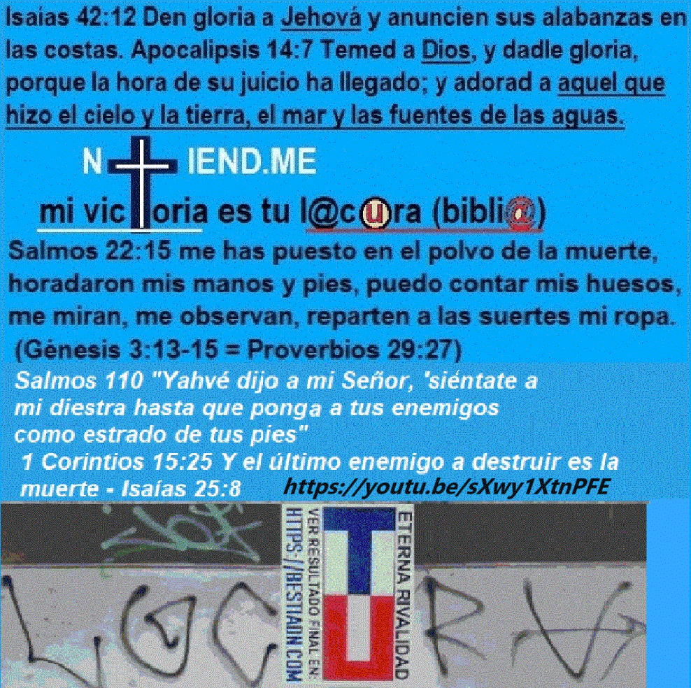 Salmos 135:14 Porque Jehová juzgará a su pueblo, Y se compadecerá de sus siervos. 15 Los ídolos de las naciones son plata y oro, Obra de manos de hombres. 16 Tienen boca, y no hablan; Tienen ojos, y no ven; 17 Tienen orejas, y no oyen; Tampoco hay aliento en sus bocas. 18 Semejantes a ellos son los que los hacen, Y todos los que en ellos confían. (El que tenga oídos para oir, que me escuche… https://youtu.be/e-f_UiTKFx8