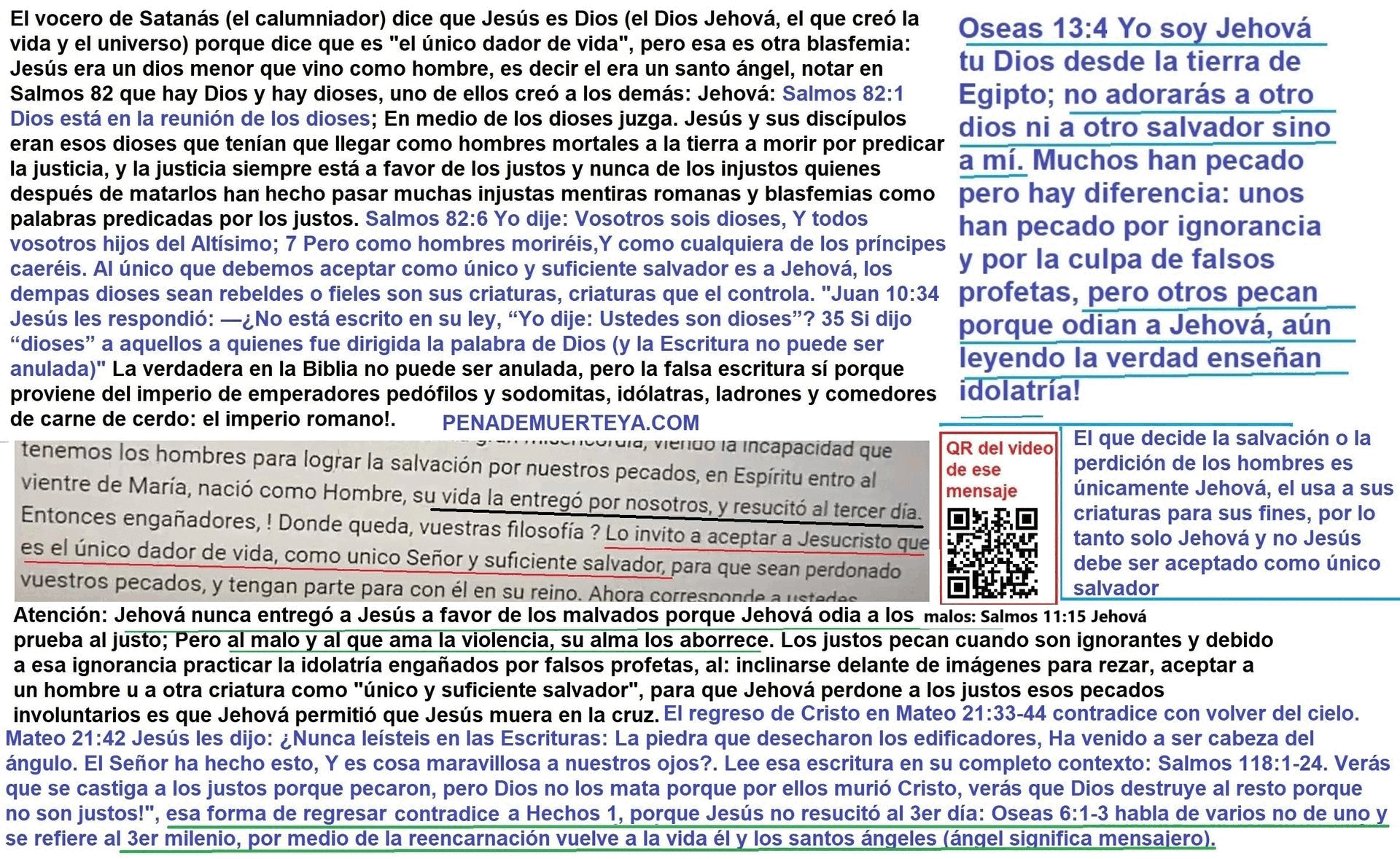 La pena de muerte debe ser legalizada con urgencia dentro de un marco legal justo a prueba de corrupción, en el cual por ejemplo al testigo falso que busque con su falsa acusación la muerte de un inocente, o al juez que busque librar de la muerte a un extorsionador o un asesino, también se le condene a muerte, y nunca se debe confundir al verdugo justiciero con un asesino condenado a muerte con justicia, porque nunca fue, ni es, ni será lo mismo, aunque las mafias de los falsos profetas, sucesores de los perseguidores romanos, los hayan querido equiparar al oponerse a la justicia, como injustos que son. Solo así, y con ayuda de la ciencia forense tan avanzada que tenemos, nos aseguraríamos de condenas rápidas y justas. La falta de pena de muerte no está funcinando, vemos como las extorsiones crecen, los extorsionadores matan sin temor porque no hay pena de muerte. El Salvador con su megacárcel solo está guardando problema no terminándolo. Es más caro mantener extorsionadores en cárceles que fusilarlos. Los malos no cambian, por eso no merecen que se les respete la vida a aquellos quienes no respetaron las vidas ajenas y las quitaron con injusticia. Casi todos los capturados son reincidentes. Los buenos y los malos se equivocan a veces, pero eso no les quita que sean buenos o malos. ¿Cómo nos aseguramos de que el derecho a la vida se respete si no condenamos a muerte a quienes no lo hagan?, tenerlos en cárcel es costoso, la pena de muerte es el castigo justo que se merecen los que matan con injusticia. Y justo sería que solo quienes defienden la vida de esos asesinos sean sus víctimas y no los que les deseamos la pena de muerte. Muchos usan a Dios como excusa para decirle no a la justicia, muchos usan a Dios como pretexto para decirle no a la pena de muerte. De esto hablo en ese video. Dios dictó la pena de muerte con justicia, pero en la Biblia encontrarás pasajes contradictorios tanto en el nuevo y en el antiguo testamento, y la explicación a eso es una: Una vez que los romanos tomaron el control de Jesuralén y mataron a los que tenían la religión de Moisés, ellos se dedicaron a destruir los fundamentos de la religión de los judíos, y así ellos crearon el contenido de la Biblia, en base a una mezcla de frases griegas, mensajes pro helenisticos que contradicen dogmas de la religión perseguida por ellos, los restos de los mensajes de la religión perseguida que quedan en la Biblia se contradicen con los mensajes injertados por los injustos romanos. De algunas de esas contradicciones hablo en este breve video. Y si nos remitimos a mensajes en la Biblia que no niegan ni los falsos profetas ni los justos, entonces: Si Dios hubiese creado a los malos capaces de convertirse en buenos, entonces Dios hubiese dictado para ellos conversión o terapias de inserción a la sociedad, y no la pena de muerte, y en ese caso este mandamiento hubiese sido un sin sentido: Números 35:33 No contaminen la tierra donde vivan (con asesinatos), porque la sangre derramada hará impura la tierra, y solo se purificará de la sangre derramada en ella (con ajusticiamientos), con la sangre del que la derramó. Si el malvado se pudiera convertir en justo, este mensaje sería falso: Daniel 12:10 Muchos serán limpios, y emblanquecidos y purificados; los impíos procederán impíamente, y ninguno de los impíos entenderá, pero los entendidos comprenderán. El Papa Francisco se opone a la pena de muerte diciendo que fomenta la venganza y no la justicia, él niega la verdad, como lo hicieron los perseguidores romanos, si no existiesen las venganzas amigables con la justicia, ¿Qué significa esto?: Salmos 58:10 Se alegrará el justo cuando viere la venganza; Sus pies lavará en la sangre del impío. 11 Entonces dirá el hombre: Ciertamente hay galardón para el justo; Ciertamente hay Dios que juzga en la tierra. Si debiésemos dejarle todo lo que es justicia a Dios y quedarnos de brazos cruzados sin actuar como sus herramientas de justicia, ¿Qué significa esta órden de Dios?: Apocalipsis 18:6 Dadle a ella como ella os ha dado, y pagadle doble según sus obras; en el cáliz en que ella preparó bebida, preparadle a ella el doble. 7 Cuanto ella se ha glorificado y ha vivido en deleites, tanto dadle de tormento y llanto; porque dice en su corazón: Yo estoy sentada como reina, y no soy viuda, y no veré llanto; 8 por lo cual en un solo día vendrán sus plagas; muerte, llanto y hambre, y será quemada con fuego; porque poderoso es Dios el Señor, que la juzga. https://penademuerteya.com https://ntiend.me
