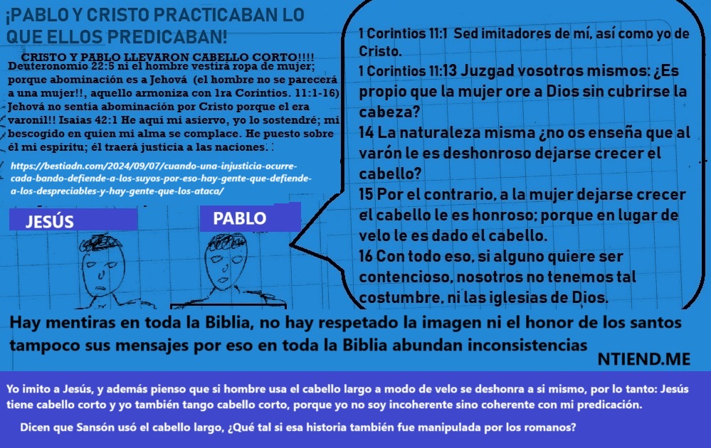 1 Corintios 11:14 La naturaleza misma, ¿no os enseña que al varón le es deshonroso dejarse crecer el cabello? 15 Por el contrario, a la mujer dejarse crecer el cabello le es honroso, porque en lugar de velo le es dado el cabello.