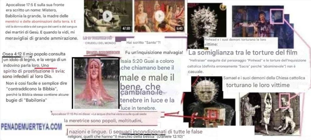 Faccio quello che farebbero loro (Apocalisse 12:7), combatto contro false testimonianze contro Dio, e la Bibbia include quelle false testimonianze, ecco perché Apocalisse 12:9 dice quello che dice: la Bibbia fa parte di quell’inganno mondiale. – Con queste parole: Apocalisse 22:18 Attesto a chiunque ascolta le parole della profezia di questo libro: Se qualcuno aggiunge a queste cose, Dio farà venire su di lui le piaghe che sono scritte in questo libro. 19 E se qualcuno togli le parole del libro di questa profezia, Dio toglierà la sua parte dal libro della vita, dalla città santa e dalle cose che sono scritte in questo libro». Giovanni non si riferiva alla Bibbia, la Bibbia non esisteva, Giovanni si riferiva al vero vangelo che consisteva nel maledire i nemici, non nel benedirli come afferma la menzogna in Matteo 5:38-48, proprio per questo è che maledice coloro che sapeva avrebbero adulterato le parole anche del libro di quel libro che ha scritto, tuttavia nessuna menzogna ha solidità, nessun santo è morto provando amore per i loro nemici che li hanno assassinati, questo passaggio lo dimostra: Apocalisse 6:10 E loro gridò ad alta voce dicendo: Fino a quando, Signore, Santo e Verissimo, non giudichi e vieni nostro santo gre di coloro che abitano sulla terra?. Anche Dio è vendicativo, e quel passaggio lo rende chiaro: Apocalisse 16:5 E udii l’angelo delle acque che diceva: Tu sei giusto, o Signore, colui che è e che eri, il Santo, perché hai giudicato queste cose. 6 Poiché hanno versato il sangue dei santi e dei profeti, hai dato loro anche sangue da bere; beh se lo meritano. 7 Udii anche un altro, che dall’altare diceva: Sì, Signore Dio onnipotente, i tuoi giudizi sono veri e giusti. L’amore per i nemici basato su un Dio che ama i suoi nemici fa parte delle bugie romane nel Vangelo.