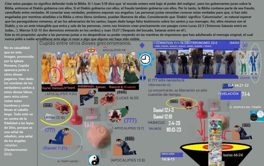 Citar estos pasajes no significa defender toda la Biblia. Si 1 Juan 5:19 dice que ‘el mundo entero está bajo el poder del maligno’, pero los gobernantes juran sobre la Biblia, entonces el Diablo gobierna con ellos. Si el Diablo gobierna con ellos, el fraude también gobierna con ellos. Por lo tanto, la Biblia contiene parte de ese fraude, camuflado entre verdades. Al conectar esas verdades, podemos exponer sus engaños. Las personas justas necesitan conocer estas verdades para que, si han sido engañadas por mentiras añadidas a la Biblia u otros libros similares, puedan liberarse de ellas.