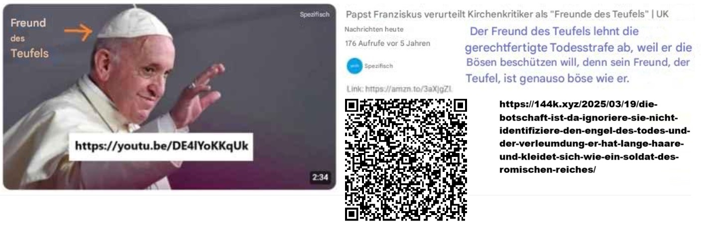 Da „Teufel“ „Verleumder“ bedeutet, liegt es nahe, dass die römischen Verfolger als Gegner der Heiligen später falsches Zeugnis über die Heiligen und ihre Botschaften abgelegt haben. Sie sind also selbst der Teufel und nicht ein immaterielles Wesen, das in Menschen eindringt und sie wieder verlässt, wie uns Passagen wie Lukas 22,3 („Da fuhr der Satan in Judas …“), Markus 5,12-13 (die Dämonen fuhren in die Schweine) und Johannes 13,27 („Nach dem Bissen fuhr der Satan in ihn“) glauben machen.