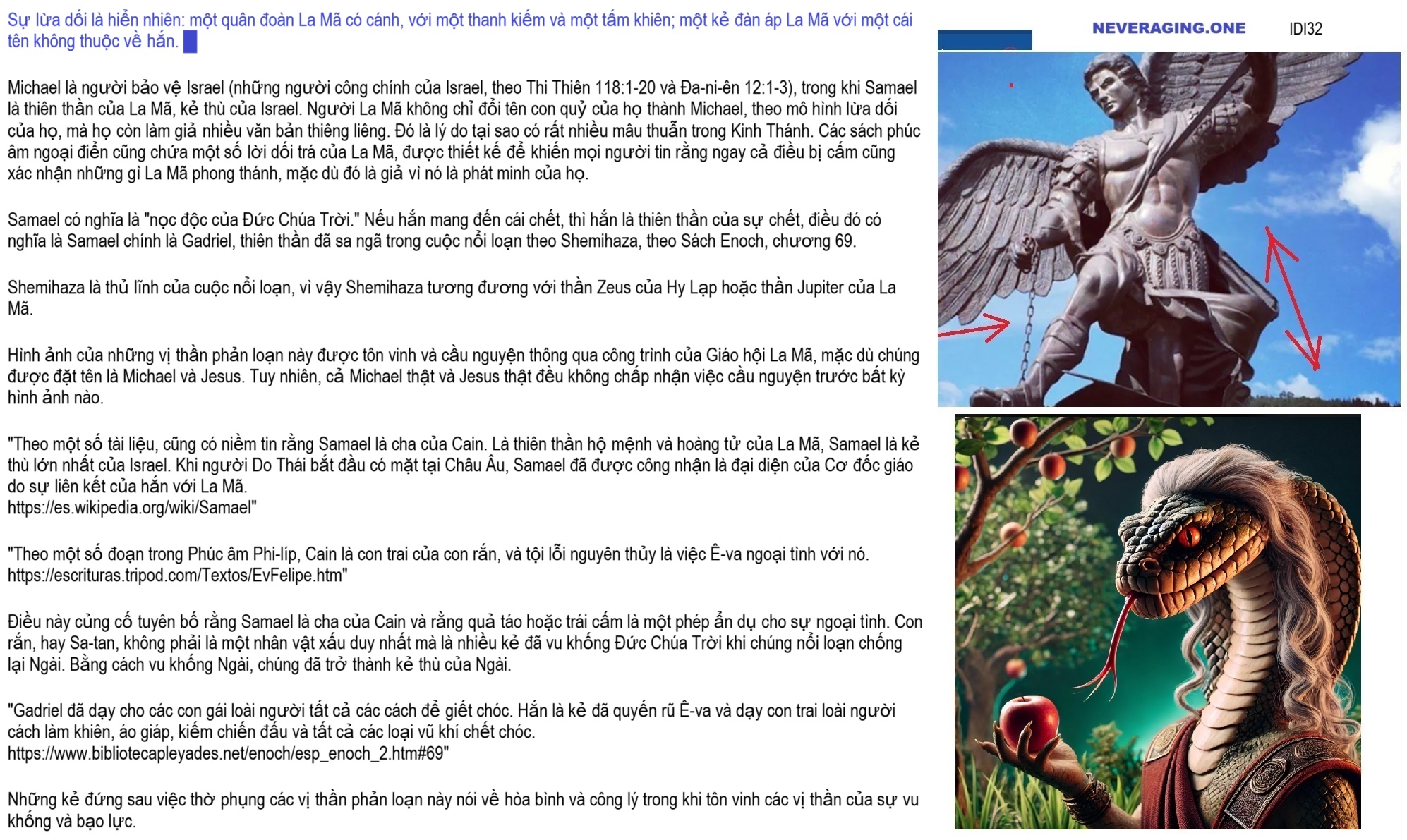 «Ai chịu trách nhiệm về cái ác, «»Satan»» hay người thực hiện điều ác? Đừng để bị lừa bởi những lời biện minh ngu ngốc vì «»Quỷ dữ»» mà họ đổ lỗi cho những hành động xấu xa của chính họ thực ra chính là họ. Lời bào chữa điển hình của một kẻ cuồng tín tôn giáo: «»Tôi không phải như vậy vì tôi không phải là người làm điều ác này, mà là con quỷ đã chiếm hữu tôi làm điều ác này.»» Người La Mã, hành động như «»Satan»», đã tạo ra những nội dung mà họ cũng mạo danh là luật của Moses, những nội dung bất công nhằm làm mất uy tín của những nội dung công bằng: Kinh Thánh không chỉ chứa sự thật mà còn có cả những lời dối trá. Satan là một thực thể bằng xương bằng thịt vì nó có nghĩa là: kẻ vu khống. Người La Mã đã vu khống Phaolô bằng cách quy cho ông tác giả của thông điệp trong Ê-phê-sô 6:12. Cuộc chiến là chống lại xác thịt và máu. Dân số ký 35:33 đề cập đến án tử hình đối với xác thịt và máu, các thiên thần được Đức Chúa Trời sai đến thành Sô-đôm đã tiêu diệt xác thịt và máu, chứ không phải «»các thế lực tà ác thuộc linh ở các vùng trên trời.»» Ma-thi-ơ 23:15 nói rằng người Pha-ri-si biến những người theo họ trở nên thậm chí còn tham nhũng hơn họ, điều này cho thấy một người có thể trở nên bất công do ảnh hưởng từ bên ngoài. Ngược lại, Đa-ni-ên 12:10 nói rằng những kẻ bất chính sẽ tiếp tục làm điều bất chính vì đó là bản chất của họ, và chỉ những người công chính mới hiểu được con đường công lý. Sự mâu thuẫn giữa hai thông điệp này cho thấy một số phần trong Kinh Thánh không nhất quán với nhau, đặt ra câu hỏi về tính chân thực của nó. https://naodanxxii.wordpress.com/wp-content/uploads/2025/03/idi32-the-plot.pdf .» «Đế chế La Mã, Bahira, Muhammad, Jesus và đàn áp Do Thái giáo. Sự ra đời và cái chết của con thú thứ tư. Liên minh Hy Lạp – La Mã do cùng một vị thần lập nên. Đế chế Seleucid. Hãy cẩn thận khi tin vào phúc âm của kẻ địch Chúa (Tin mừng cho kẻ bất chính, mặc dù là tin sai) Nếu bạn muốn cứu mình khỏi sự lừa dối của kẻ thù công lý, hãy cân nhắc rằng: Để bác bỏ phúc âm giả của La Mã, hãy chấp nhận rằng nếu Chúa Giê-su là người công chính thì Ngài không yêu kẻ thù của mình, và nếu Ngài không phải là kẻ đạo đức giả thì Ngài không rao giảng về tình yêu thương kẻ thù vì Ngài không rao giảng về điều Ngài không thực hành: Châm ngôn 29: 27 Người công chính ghét kẻ bất chính, và kẻ bất chính ghét người công chính. Đây là một phần của phúc âm bị người La Mã làm sai lệch trong Kinh Thánh: 1 Phi-e-rơ 3:18 Vì Đấng Christ đã chết một lần vì tội lỗi, là Đấng công bình thay cho kẻ không công bình, để dẫn chúng ta đến cùng Đức Chúa Trời. Bây giờ hãy xem điều này để chứng minh lời vu khống đó là sai: Thi Thiên 118: 20 Đây là cửa của Đức Giê-hô-va; người công chính sẽ vào đó. 21 Tôi sẽ cảm tạ Chúa vì Chúa đã lắng nghe tôi và cứu rỗi tôi. 22 Hòn đá mà thợ xây đã loại bỏ đã trở thành nền tảng. Chúa Giêsu nguyền rủa kẻ thù của mình trong dụ ngôn dự đoán về cái chết và sự trở lại của Ngài: Lu-ca 20:14 Nhưng các người làm vườn nho thấy vậy, thì bàn với nhau rằng: Người nầy là người thừa kế; Hãy giết hắn đi, để gia tài sẽ về tay chúng ta. 15 Vậy họ đuổi cậu ra khỏi vườn nho và giết chết. Vậy thì người chủ vườn nho sẽ làm gì với chúng? 16 Người ấy sẽ đến tiêu diệt những người làm vườn nho này và giao vườn nho cho người khác. Khi nghe vậy, họ nói: “Chắc chắn là không!” 17 Nhưng Đức Giê-su nhìn họ và nói: “Vậy thì lời chép rằng: ‘Hòn đá mà thợ xây loại bỏ đã trở thành đá góc nhà’ có nghĩa là gì?” Ông đã nói về hòn đá này, hòn đá ác mộng của vua Babylon: Đa-ni-ên 2:31 Hỡi vua, khi vua đang nhìn, kìa, có một pho tượng lớn đứng trước mặt vua, một pho tượng cực kỳ lớn và vinh quang vô cùng tuyệt vời. vẻ ngoài của nó thật đáng sợ. 32 Đầu của pho tượng bằng vàng ròng, ngực và cánh tay bằng bạc, bụng và đùi bằng đồng, 33 chân bằng sắt, bàn chân một phần bằng sắt một phần bằng đất sét. 34 Khi ngài đang nhìn, thì có một hòn đá không phải do tay người đục ra, đập vào bức tượng bằng sắt và đất sét ở chân, làm chúng vỡ tan thành từng mảnh. 35 Bấy giờ, sắt, đất sét, đồng, bạc và vàng đều bị đập vỡ tan tành, trở nên như trấu trên sân đạp lúa mùa hè; gió cuốn chúng đi, không để lại dấu vết gì. Nhưng hòn đá đập vào pho tượng thì trở thành một ngọn núi lớn và phủ kín cả mặt đất. Con thú thứ tư là liên minh của những người lãnh đạo các tôn giáo giả đồng minh với sự gian lận bị lên án của La Mã. Kitô giáo và Hồi giáo thống trị thế giới, hầu hết các chính phủ đều tuyên thệ theo kinh Koran hoặc Kinh thánh, vì lý do đơn giản đó, ngay cả khi các chính phủ phủ nhận điều đó, họ vẫn là nhữn