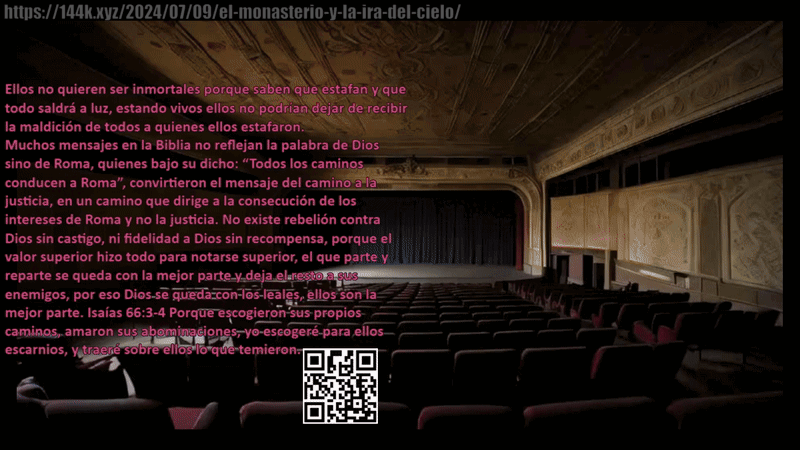 El juicio final en la profecía de Daniel que dice: Pero se sentará el Juez, y le quitarán su dominio para que sea destruido y arruinado, debe cumplirse… ¿Qué sentía Jesús por sus enemigos? ¿Qué sentían los santos por sus enemigos? ¿Amor u odio? Muchos se caerán de espaldas al notar como les han visto la cara y los han estafado; deberíamos reclamar indemnización al Vaticano y a sus cómplices por todo el tiempo que nos han hecho desperdiciar, y hablo en serio.