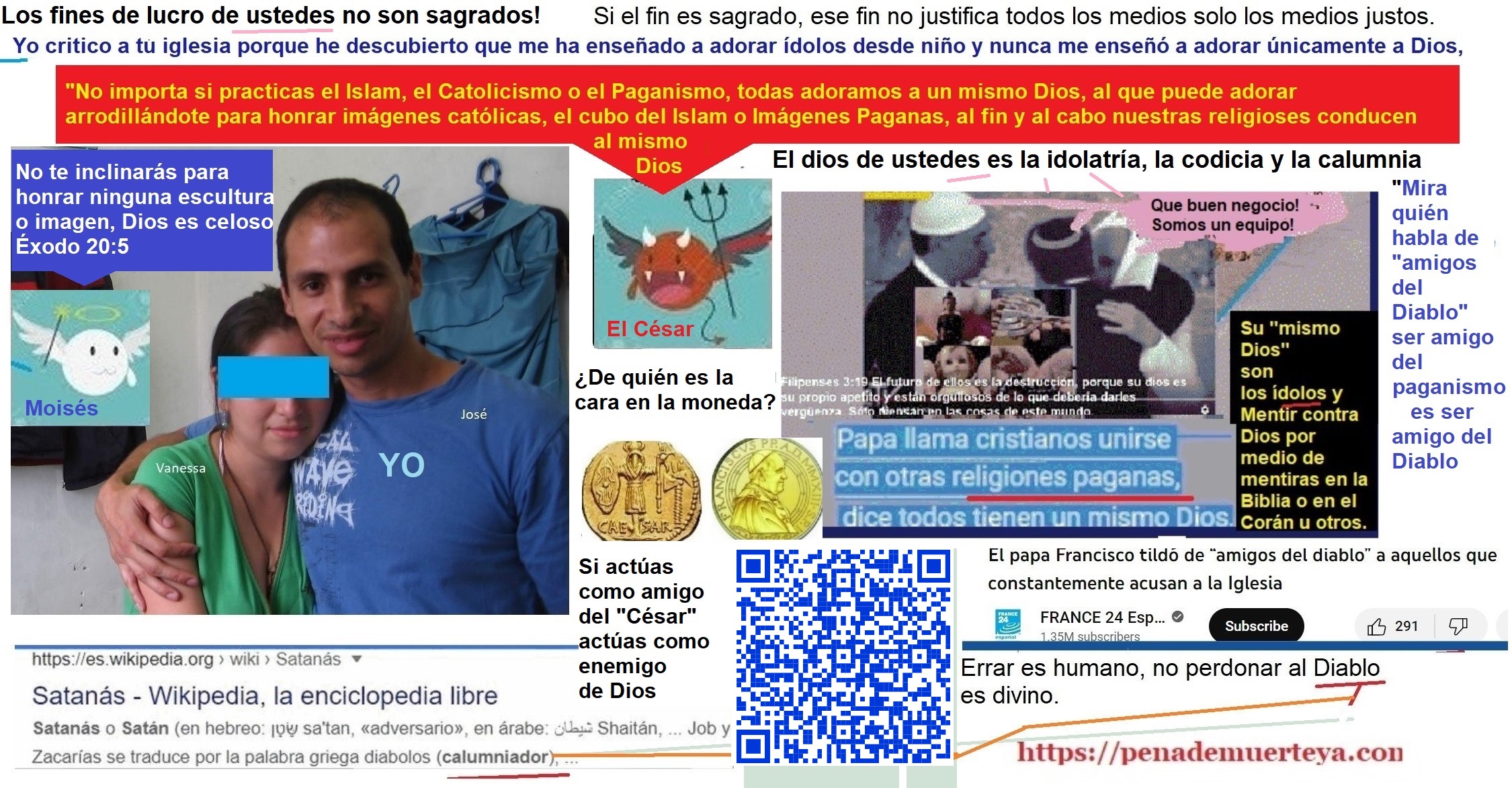 Típico mensaje del pastor hipócrita que adora criaturas mientras dice que solo adora al Dios de Abraham: «Si cuando oras dices: «Satanás dame vida eterna» entonces tú eres satánico, pero sí dices: «Jesús dame vida eterna», entonces tú no eres Satánico».