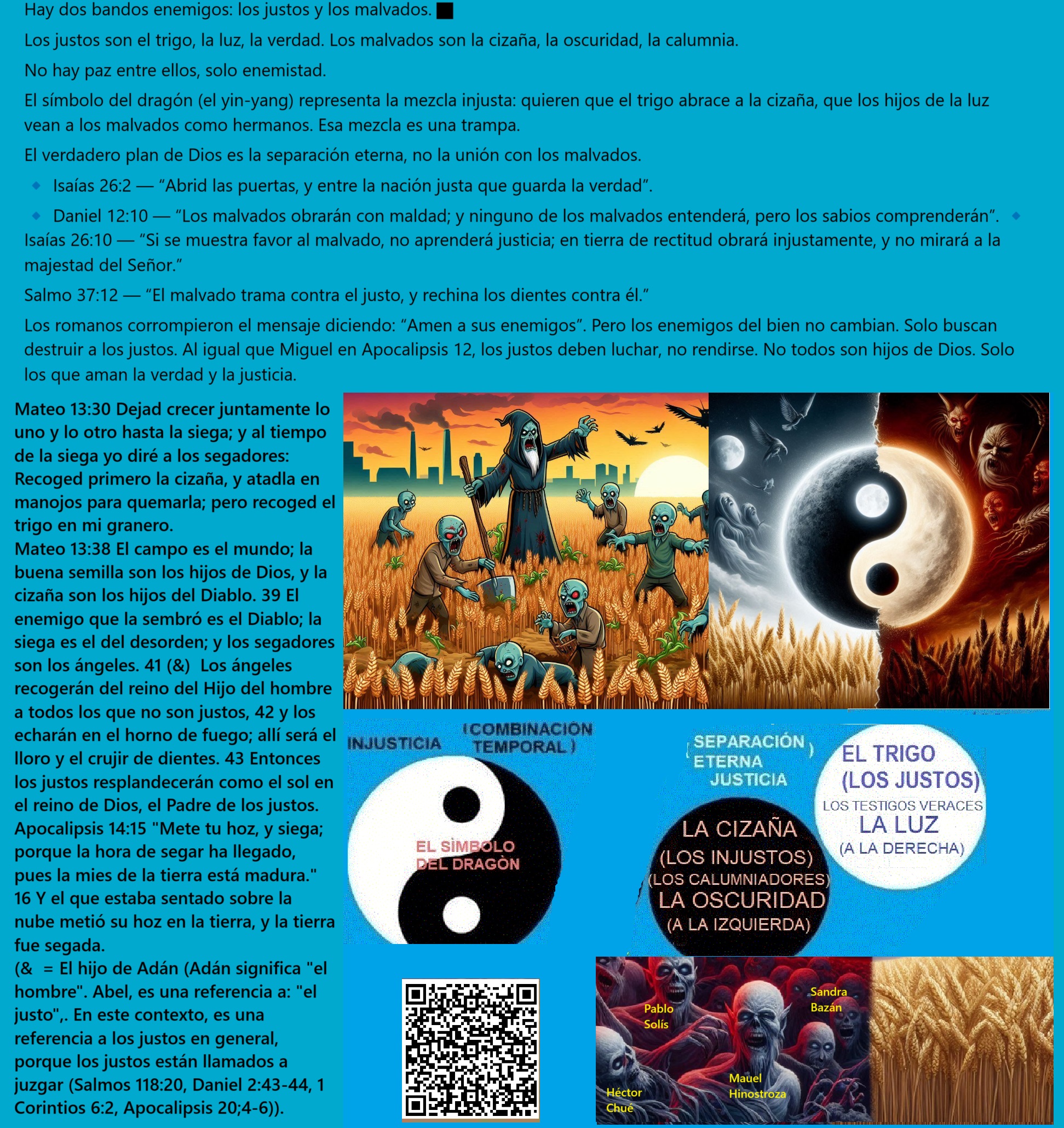 No deseo que otros justos pasen por experiencias como la mía, por eso he creado lo que estás leyendo. Sé que esto irritará a los injustos como Sandra, pero la verdad es como el verdadero evangelio, y solo favorece a los justos.