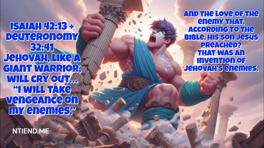 Este es el cántico de Moisés, no hay en ese cántico amor hacia los enemigos, si A=B y B=C entonces A=C, solo un imbécil o un hipócrita niega esto: