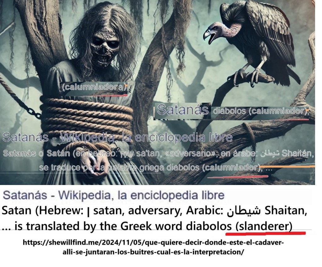 Satanás dice: Reciban a su salvador y dios, de rodillas, bastardos, no puedo matar al que me acusa ante Jehová, pero ustedes no son él, y de todos modos quiero usar mi espada afilada …!»