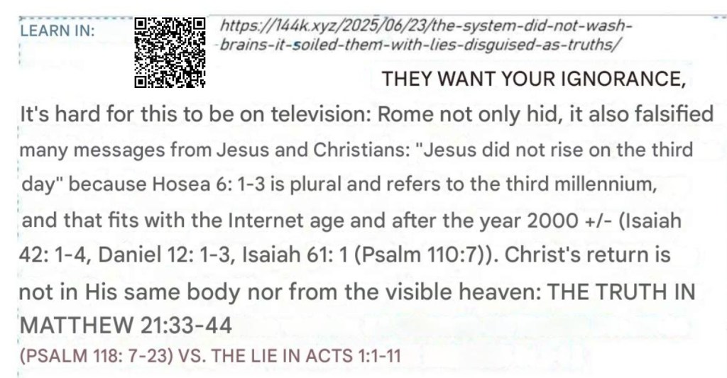 Por eso es que en mi otro blog: https://144k.xyz , yo escribí este mensaje: