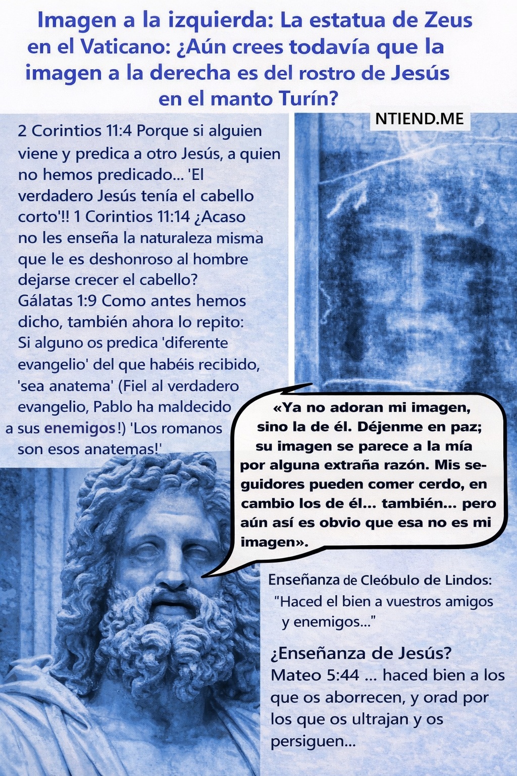 Aquilo que nos foi apresentado como palavra de Deus, por vezes, não é mais do que helenismo disfarçado de sacralidade. Estas ironias e contradições revelam como doutrinas absurdas enfraqueceram os justos e exaltaram os injustos. É tempo de abrir os olhos e questionar se olho por olho é sempre errado, ou se é melhor oferecer o outro olho ao inimigo, como disse um dia o império, declarando que já não seria o inimigo perseguidor.