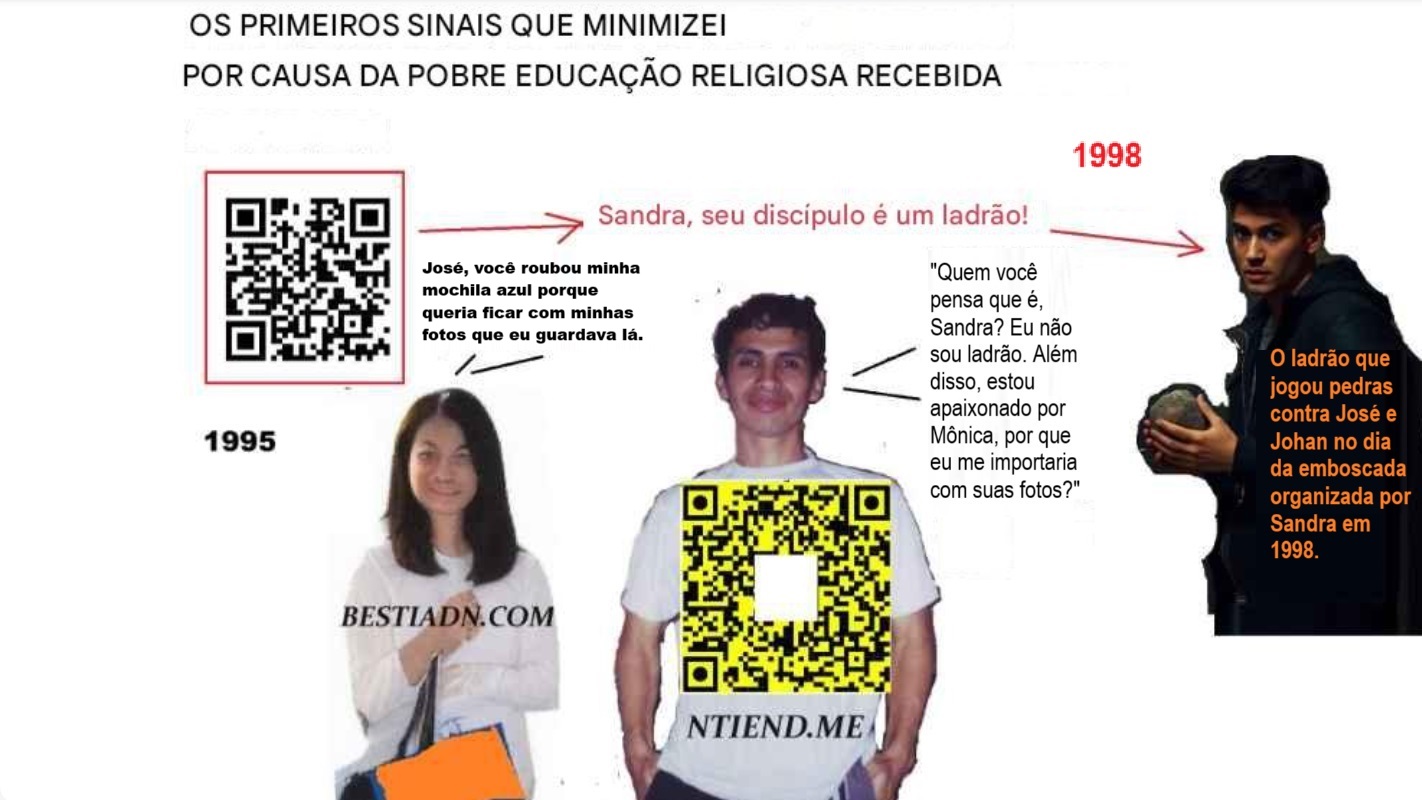 Los ladrones suelen usar la estrategia de fingir buenas intenciones: Para robar en tiendas fingen ser clientes, para pedir diezmos fingen predicar la palabra de Dios, pero predican la de Roma, etc. etc. Sandra Elizabeth fingió ser amiga, luego fingió ser una amiga en problemas buscando mi ayuda, pero todo era para calumniarme y emboscarme con tres delincuentes, seguramente por despecho porque un año antes rechacé sus insinuaciones porque estaba enamorado de Mónica Nieves, a quien fui fiel. Pero Mónica no confiaba en mi fidelidad y amenazó con matar a Sandra Elizabeth, por lo que terminé con Mónica lentamente, en ocho meses, para que no creyera que era por Sandra. Pero así me pagó Sandra Elizabeth, con calumnias. Me acusó falsamente de acosarla sexualmente y, con ese pretexto, ordenó a tres delincuentes que me golpearan, todo esto frente a ella.