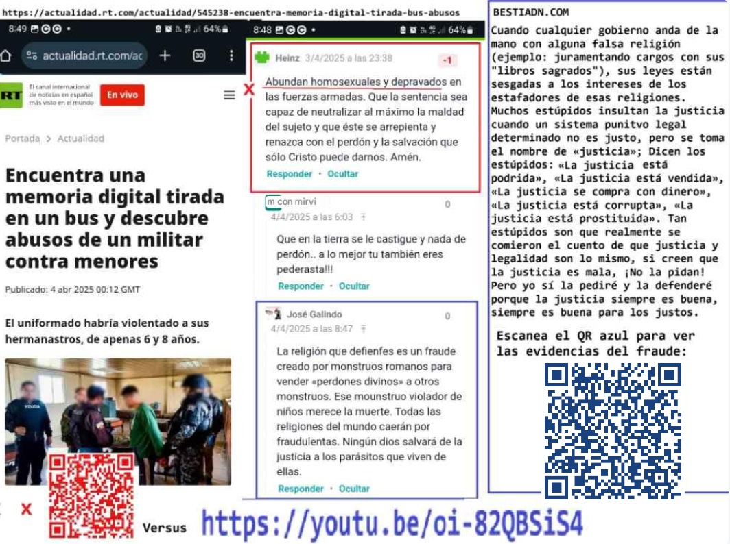 No soy cristiano; soy un henoteísta. Creo en un Dios supremo que está por encima de todo, y creo que existen varios dioses creados — algunos fieles, otros engañadores. Yo solo le rezo al Dios supremo. Pero como fui adoctrinado desde la infancia en el cristianismo romano, durante años creí en sus enseñanzas. Apliqué sus ideas incluso cuando el sentido común me decía lo contrario. Por ejemplo —por decirlo de alguna manera— ofrecí la otra mejilla a una mujer que me había golpeado en una. Una mujer que al inicio se comportó como amiga, pero que, sin justificación alguna, comenzó a tratarme como si yo fuera su enemigo, con actitudes extrañas y contradictorias. Influenciado por la Biblia, llegué a pensar que ella había caído bajo algún embrujo, y que lo que necesitaba era oración para volver a ser la amiga que había mostrado ser (o fingido ser). Pero al final, todo empeoró. Apenas tuve la oportunidad de investigar más a fondo, descubrí la mentira y me sentí estafado en mi fe. Comprendí que muchas de esas enseñanzas no provenían del verdadero mensaje de justicia, sino del helenismo romano infiltrado en las Escrituras. Y confirmé que había sido engañado. Por eso hoy denuncio a Roma y su fraude. No lucho contra Dios, sino contra las calumnias que han contaminado su mensaje. Proverbios 29:27 declara que el justo aborrece al injusto. Sin embargo, 1 Pedro 3:18 asegura que el justo murió por los injustos. ¿Quién puede creer que alguien muere por aquellos a quienes aborrece? Creerlo es tener fe ciega; es aceptar la incoherencia. Y cuando se predica la fe a ciegas, ¿no será porque el lobo quiere que su presa no vea el engaño?