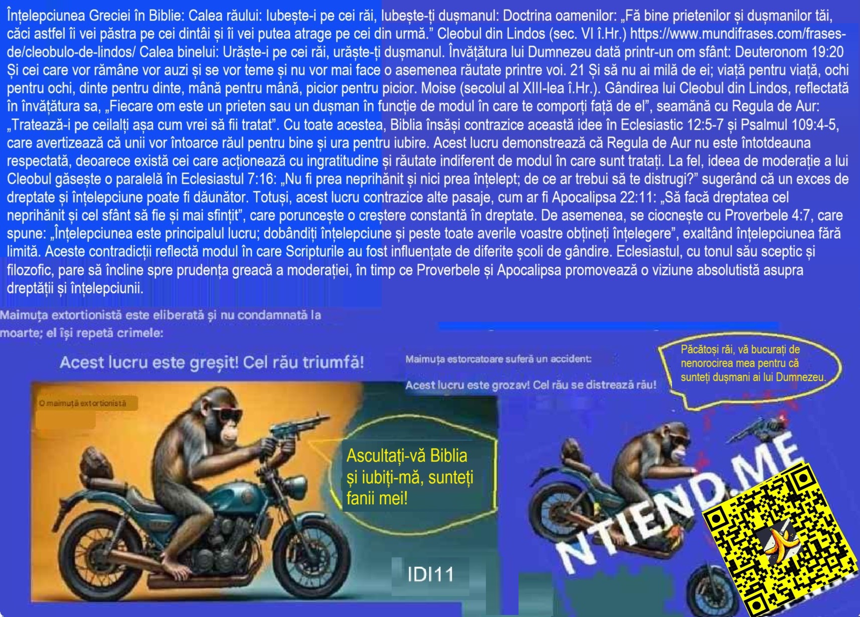 «Cine este responsabil pentru rău, «»Satana»» sau persoana care comite răul? Nu te lăsa păcălit de justificări stupide, deoarece „Diavolul” pe care îl învinuiesc pentru propriile lor fapte rele sunt chiar ei înșiși. Scuza tipică a persoanei religioase perverse: „Eu nu sunt așa, pentru că nu eu fac acest rău, ci Diavolul care m-a posedat este cel care face acest rău.” Romanii, acționând ca „Satana”, au creat conținut pe care l-au prezentat drept legile lui Moise, un conținut nedrept menit să discrediteze ceea ce era drept. Biblia nu conține doar adevăruri, ci și minciuni. Satana este o ființă din carne și sânge, deoarece înseamnă „calomniator”. Romanii l-au calomniat pe Pavel atribuindu-i mesajul din Efeseni 6:12. Lupta este împotriva cărnii și sângelui. Numeri 35:33 menționează pedeapsa cu moartea împotriva cărnii și sângelui, iar îngerii trimiși de Dumnezeu la Sodoma au distrus carnea și sângele, nu „duhurile rele din locurile cerești.” Matei 23:15 spune că fariseii își fac discipolii și mai corupți decât ei înșiși, ceea ce sugerează că cineva poate deveni nedrept din cauza unei influențe externe. Pe de altă parte, Daniel 12:10 afirmă că cei nedrepți vor continua să acționeze nedrept, deoarece aceasta este natura lor, iar doar cei drepți vor înțelege calea dreptății. Discrepanța dintre aceste două mesaje arată că unele părți ale Bibliei se contrazic între ele, punând sub semnul întrebării veridicitatea sa absolută. https://naodanxxii.wordpress.com/wp-content/uploads/2025/03/idi11-the-plot.pdf .» «Imperiul Roman, Bahira, Mahomed, Isus și iudaismul persecutat. Nașterea și moartea celei de-a patra fiare. Alianța greco-romană a acelorași zei. Imperiul Seleucid. Feriți-vă de a crede în Evanghelia lui antihrist (Vești bune pentru cei nedrepți, deși false) Dacă vrei să te salvezi de înșelăciunea adversarului justiției, ia în considerare că: Pentru a respinge Evanghelia falsă a Romei, acceptați că, dacă Isus a fost neprihănit, atunci El nu și-a iubit pe vrăjmașii Săi, iar dacă El nu era un ipocrit, atunci El nu a propovăduit dragostea pentru vrăjmași pentru că nu a propovăduit ceea ce El nu a practicat: Proverbele 29:27 Cei drepți urăsc pe cei nedrepți, iar cei nedrepți urăsc pe cei nedrepți. Aceasta face parte din Evanghelia alterată de romani pentru Biblie: 1 Petru 3:18 Căci Hristos a murit o dată pentru păcate, Cel drept pentru cei nedrepți, ca să ne aducă la Dumnezeu. Acum uită-te la asta care infirmă această calomnie: Psalmul 118: 20 Aceasta este poarta Domnului; drepții vor intra acolo. 21 Îți voi mulțumi pentru că m-ai ascultat și ai fost mântuirea mea. 22 Piatra pe care au lepădat-o constructorii a devenit piatra de temelie. Isus își blestemă vrăjmașii în pilda care îi prezice moartea și întoarcerea: Luke 20:14 14 Dar, când au văzut aceasta, arendașii viei s-au gândit între ei, zicând: Acesta este moștenitorul; haideți să-l omorâm, ca moștenirea să fie a noastră. 15 L-au aruncat deci din vie și l-au omorât. Ce le va face atunci proprietarul viei? 16 El va veni și va nimici pe acești arendași și va da via altora. Când au auzit acestea, au zis: „Cu siguranță că nu!” 17 Dar Iisus s-a uitat la ei și a zis: „Ce este, deci, aceasta care este scrisă: „Piatra pe care au lepădat-o zidarii, a devenit piatra unghiulară”?” El a vorbit despre această piatră, piatra de coșmar a regelui Babilonului: Daniel 2:31 În timp ce privegheai, rege, iată, un chip mare stătea înaintea ta, un chip extrem de mare, a cărui slavă era extrem de mare; aspectul ei era terifiant. 32 Capul chipului era de aur fin, pieptul și brațele lui de argint, pântecele și coapsele sale de aramă, 33 picioarele sale de fier și picioarele sale parțial de fier și parțial de lut. 34 În timp ce priveai, o piatră a fost tăiată fără mâini și a lovit în picioare chipul de fier și de lut și le-a rupt în bucăți. 35 Atunci fierul, lutul, bronzul, argintul și aurul s-au sfărâmat în bucăți și au devenit ca pleava de pe aria de vară; vântul le-a dus, fără a lăsa urme din ele. Dar piatra care a lovit chipul a devenit un munte mare și a umplut tot pământul. A patra fiară este alianța liderilor tuturor religiilor false prietenoase cu frauda romană denunțată. Creștinismul și islamul domină lumea, majoritatea guvernelor fie jură pe Coran, fie pe Biblie, din acest simplu motiv, chiar dacă guvernele îl neagă, sunt guverne religioase care se supun autorităților religioase din spatele acelor cărți prin care jură. Aici vă voi arăta influența romană asupra dogmelor acestor religii și cât de departe sunt acestea de dogmele religiei pe care Roma a persecutat-o. În plus, ceea ce vă voi arăta nu face parte din religia cunoscută astăzi ca iudaism. Și dacă adăugăm la aceasta frăția conducătorilor iudaismului, creștinismului și islamului, există suficiente elemente care să indice Roma ca fiind creatorul dogmelor acestor religii și că ultima religie menționată nu este aceeași cu iudaismul pe care Roma a persecutat-o. Da, afirm că Roma a creat creștinismul și că a persecutat un iudaism diferit de cel actual, liderii loiali ai iudaismului legitim nu ar da niciodată îmbrățișări frățești răspânditorilor de doctrine idolatre. Este evident că nu sunt creștin, așa că de ce citez pasaje din Biblie pentru a susține ceea ce spun? Pentru că nu totul din Biblie aparține exclusiv creștinismului, o parte din conținutul său este conținutul religiei căii dreptății care a fost persecutată de Imperiul Roman pentru că este contrară idealului roman de a face „Toate drumurile duc la Roma (Adică că aceste drumuri favorizează interesele imperiale), de aceea iau câteva pasaje din Biblie pentru a-mi susține afirmațiile. Daniel 2:40 Și a patra împără