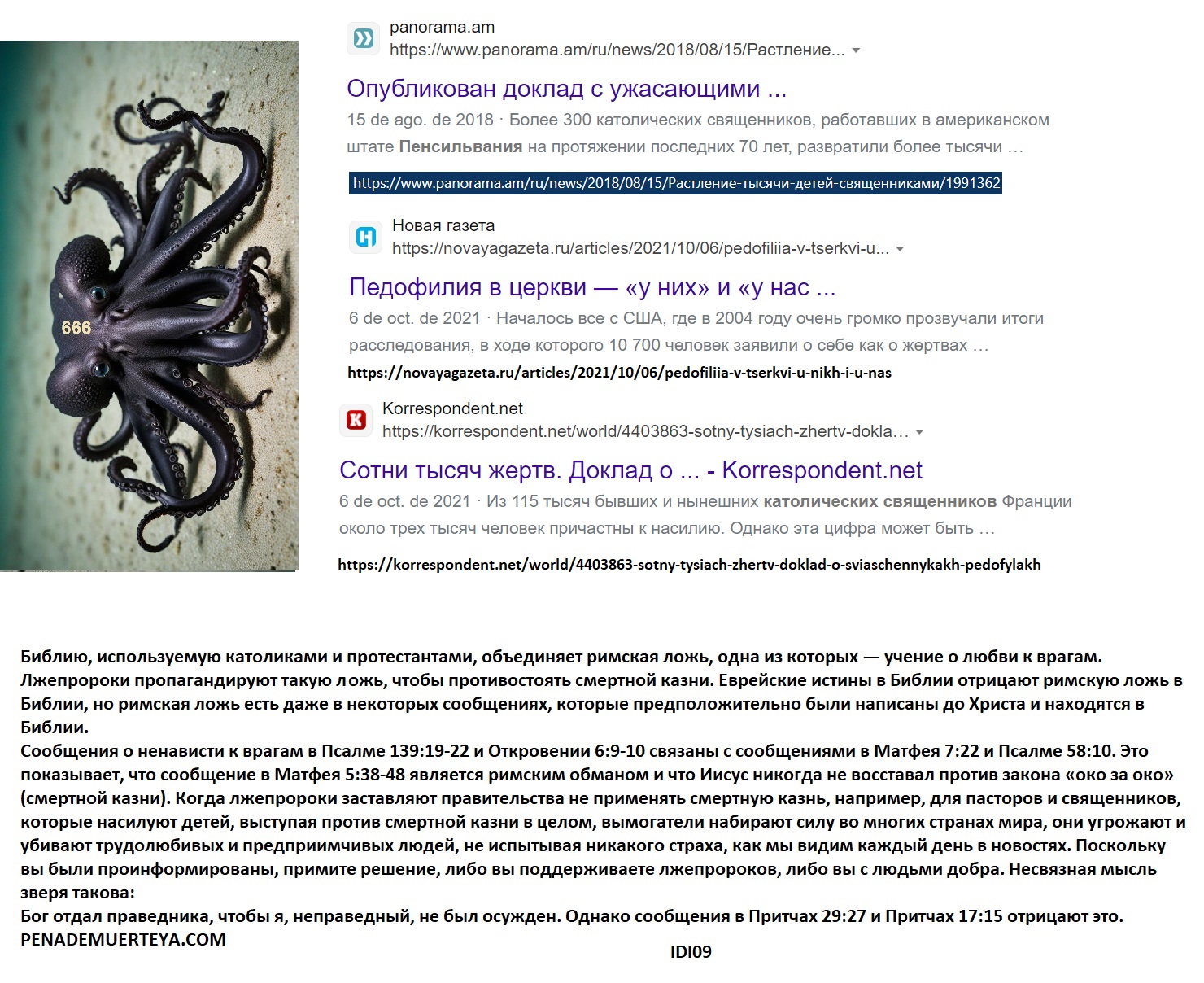 Ты понимаешь меня наполовину, дело в том, что Библию и содержащуюся в ней имперскую ложь Рим назвал «словами, вдохновленными Святым Духом», то есть для них непростительно говорить против «достоверности Библии» (что они назвали бы «хулой против Святого Духа»), но изнасилование детей является простительным. Это очень, очень серьезно.