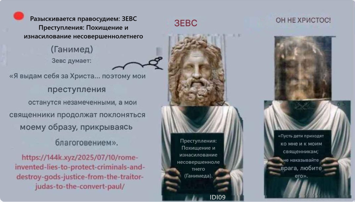 «А что, если Иисус уже ходит среди нас… не помня, кто Он есть? Рим поклонялся солнцу. Каждый солнцеворот, каждое двадцать пятое декабря он почитал его с благоговением. Когда он преследовал Иисуса и распял Его, затем сказал нам, что Он воскрес и сделал это в воскресенье, чтобы продолжать тайно поклоняться солнцу в его день. Но это неправда. Иисус говорил о вратах — вратах праведности, которые Рим тебе закрыл, чтобы обмануть тебя своей имперской ложью. В притче о злых виноградарях Он упоминает отвергнутый камень. Этот камень — Он Сам, и речь идёт о Его возвращении. Псалом 117 говорит, что Бог наказывает Его, но не отдаёт вновь смерти. Он проходит через врата — врата, через которые проходят праведники. Если бы Иисус действительно воскрес, Он знал бы всю истину, ибо вернулся бы в том же воскресшем теле и с теми же знаниями. Но пророчество говорит, что Он наказан. Почему? Потому что, чтобы вернуться, Он перевоплощается. В другом теле у Него другой мозг — тот, который не знает истины. С Ним происходит то же, что и со всеми святыми: Он побеждён грехом. ‘И дано было ему вести войну со святыми и победить их’, — говорится в Апокалипсисе. ‘Я видел, как этот рог воевал со святыми и побеждал их’, — подтвердил пророк Даниил. А если Иисус перевоплощается, значит, Он не воскрес на третий день. Осии, глава шестая, стих второй, не говорит о буквальных днях. Речь идёт о тысячелетиях. Третье тысячелетие — это день Господень, упомянутый в Псалме 117, стих 24. В этом третьем тысячелетии только тогда появляются предатели. Почему? Потому что предательство Иуды против Иисуса, которое Рим выдумал в Евангелии от Иоанна, глава 13, стих 18, не могло исполниться в Его первой жизни. Пророчество, на которое ссылается этот стих, говорит, что преданный человек действительно согрешил. Псалом 40, стихи со 2 по 9, был вырван из контекста, потому что в Своей первой жизни Иисус никогда не согрешил. Почему? Потому что в то время учили истинной религии, и Ему преподавали истину. Но после вмешательства Рима истину перестали преподавать. До конца времён, когда Михаил и Его ангелы восстают из праха смерти — то есть Иисус и праведники. Книга Даниила, глава 12, стихи с 1 по 3, ясно говорит об этом. Своими клеветами империя и её приспешники выступили против праведников, как против праведника, который пишет то, что ты сейчас читаешь.