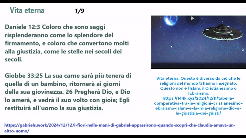 • Il post fa riferimento al concetto dei «144.000» del Libro dell’Apocalisse, un numero spesso interpretato nell’escatologia cristiana come un gruppo di individui salvati che saranno suggellati da Dio alla fine dei tempi. Questo si collega all’idea che solo i giusti saranno salvati, come menzionato nel post, riflettendo una protezione divina selettiva o un’evacuazione da un destino imminente, forse legata all’immagine degli UFO come interpretazione moderna di carri divini o veicoli di soccorso.