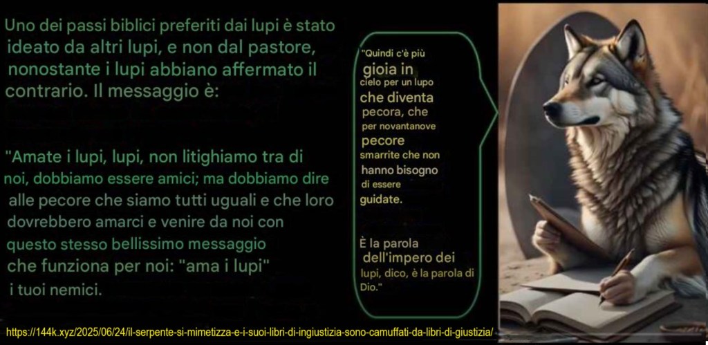 Il serpente si mimetizza e i suoi libri di ingiustizia sono camuffati da libri di giustizia.